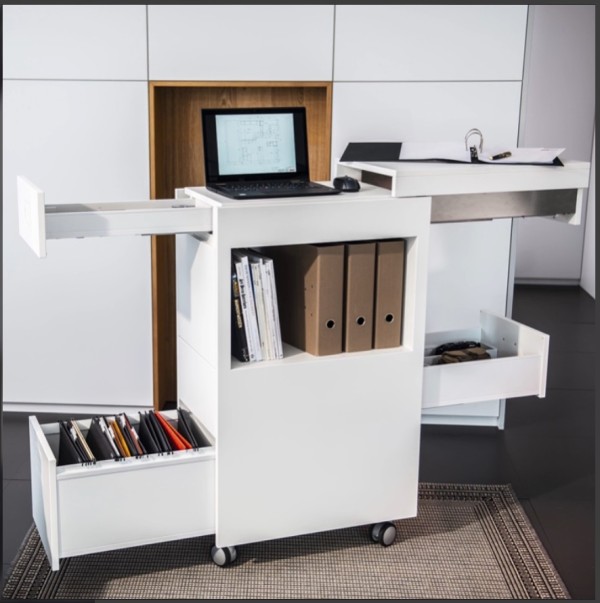 Stația de lucru mobilă de la Blum este un proiect gândit special pentru cei care au nevoie de un birou de lucru ergonomic și bine organizat, dar nu dispun de mult spațiu. Cu un design inteligent și funcțional, biroul mobil îți oferă tot ce ai nevoie pentru a lucra eficient, ocupând un spațiu minim pe podea. După ce termini lucrul, îl poți plia și depozita cu ușurință intr-un spatiu restrans..