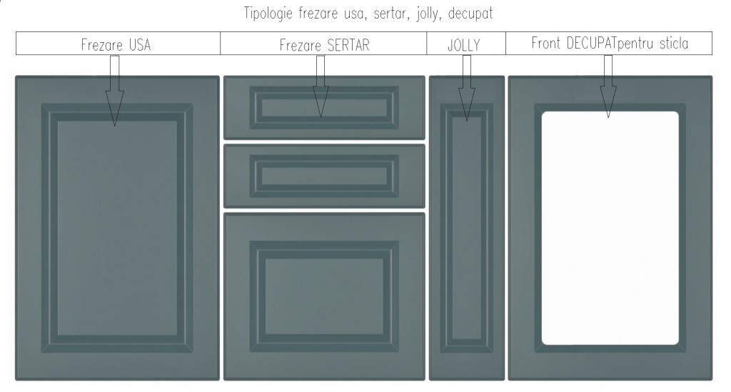 Gama de frezari de mai sus sunt executate doar pe marginile suprafetei frontale a fetelor de usi sau sertar.